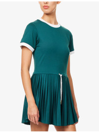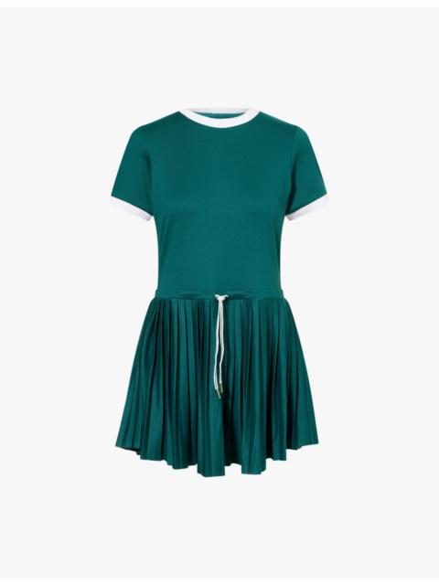 PRODUCT DETAILS - Varley stretch-jersey mini dress - 88% polyester, 12% elastane - Regular fit, round neck, short sleeves, drawstring waistband, pleated skirt, contrast ribbed trims - Machine wash at 30°C - True to size - Model is 5ft 10in/1.78m and wears a size small - Midweight, stretchy Ref: R04470173