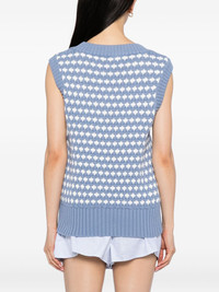 Antonella vest Highlights - Cornflower blue - V-neck - Ribbed hem - Sleeveless Imported Composition Cotton 60%, Polyester 40% SIZE & FIT Model measurements Height 5 ft 10 in(1.77 m) Bust/Chest 30.31 in(77 cm) Hips 34.25 in(87 cm) Waist 25.19 in(64 cm) FittingInformation Designed for a slim fit that sits just away from the body offering a close yet comfortable fit Made with a midweight knit, this piece offers some stretch Washing instructions Dry Clean Only