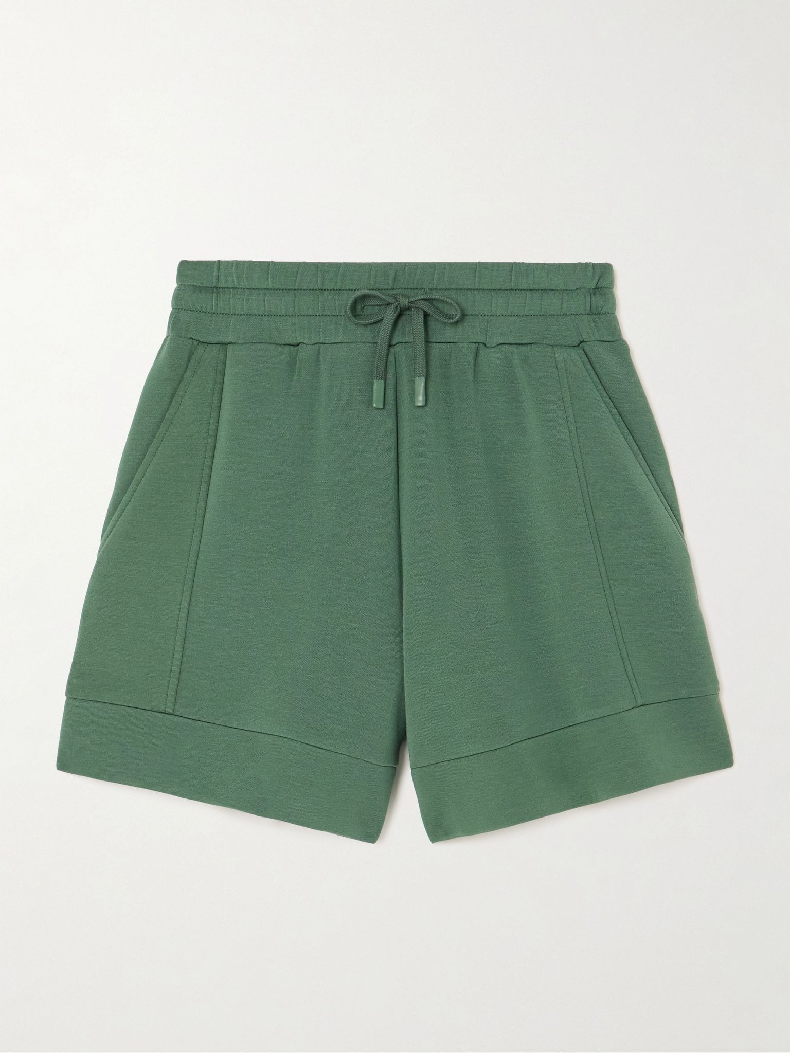 Varley's 'Atrium' shorts are ideal for workouts and rest days alike. They're made from soft jersey and cut for a relaxed fit with a comfortable elasticated waist. Pair yours with one of the label's cozy sweatshirts. Size & Fit - Fits true to size, take your normal size - High-rise, designed for a relaxed fit - Drawstring waist, designed for a comfortable fit - Mid-weight, slightly stretchy fabric - Model is wearing a size Small Details & Care - Green jersey - Pull on - 72% viscose, 23% polyester, 5% elastane