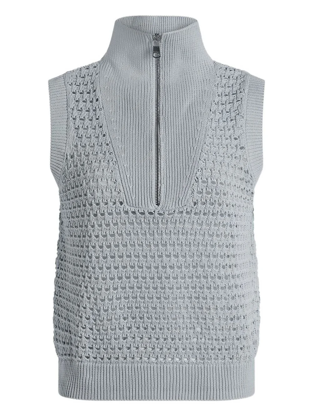 half-zip knitted vest Highlights - Light blue - Half zip fastening - Sleeveless - Open knit - Mock neck - Textured pattern Imported Composition Cotton 100% Washing instructions Read Manufacturer Guidelines