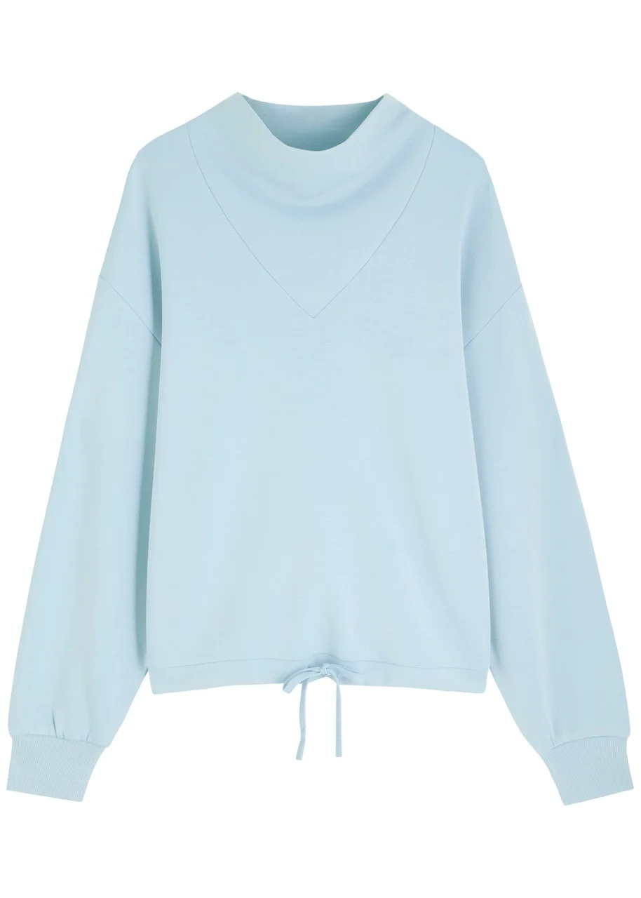 Info & Care Varley stretch-jersey sweatshirt High-neck, dropped shoulders, designer tag at side, tie-fastening at hem, ribbed trims; Slips on 81% viscose, 15% polyester, 4% elastane; trims: 96% viscose, 4% elastane Machine wash Size & Fit Length shoulder to hem: 24.5 inches/ 62cm Midweight Relaxed fit Model is 5'10"/ 178cm and wears a size small