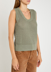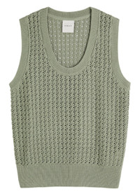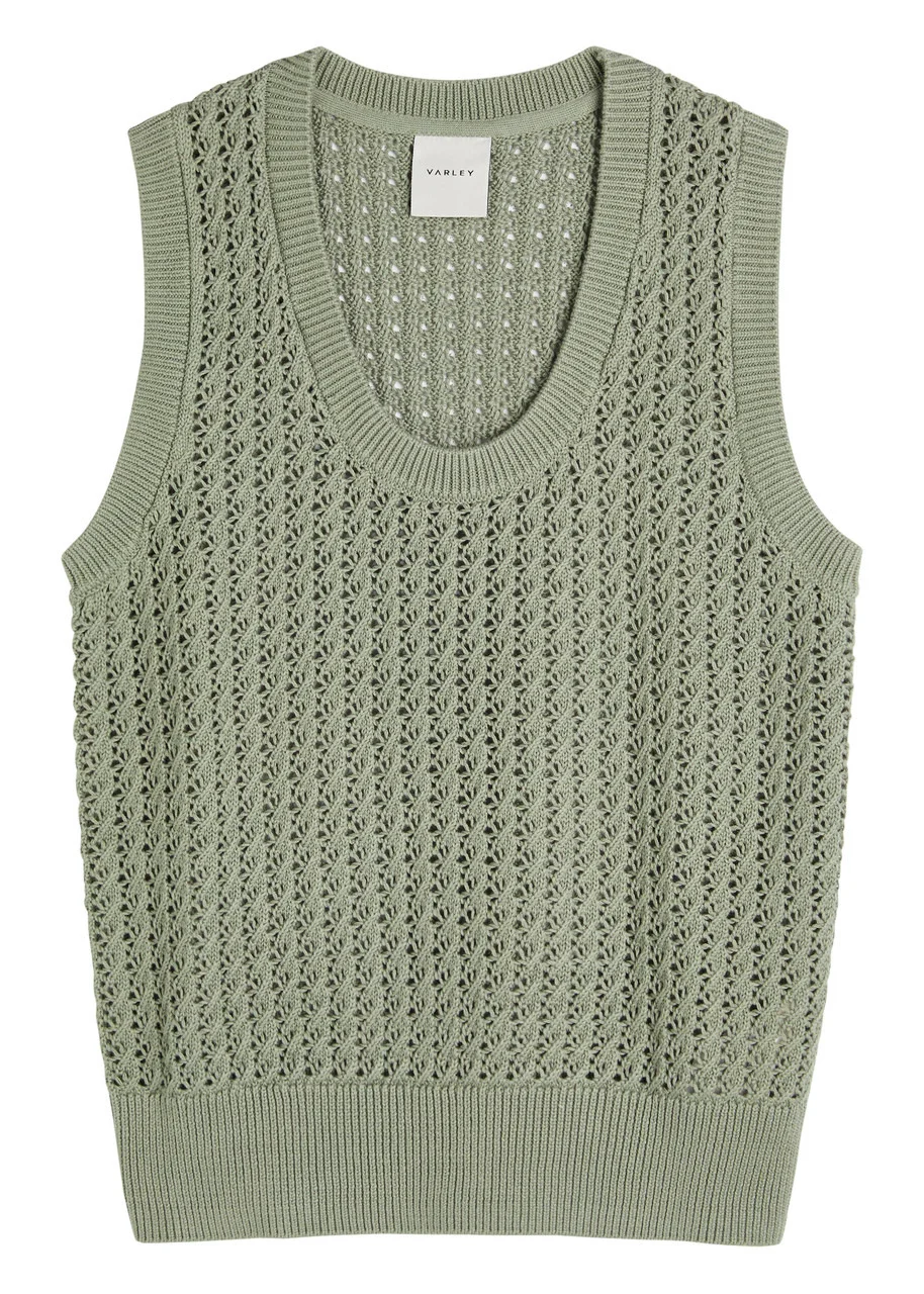 Info & Care Varley open-knit vest Scoop neck, ribbed trims Slips on 100% cotton Machine wash; Size & Fit Length shoulder to hem: 22 inches/ 56cm Midweight Relaxed fit Model is 5'9"/ 175cm and wears a size small