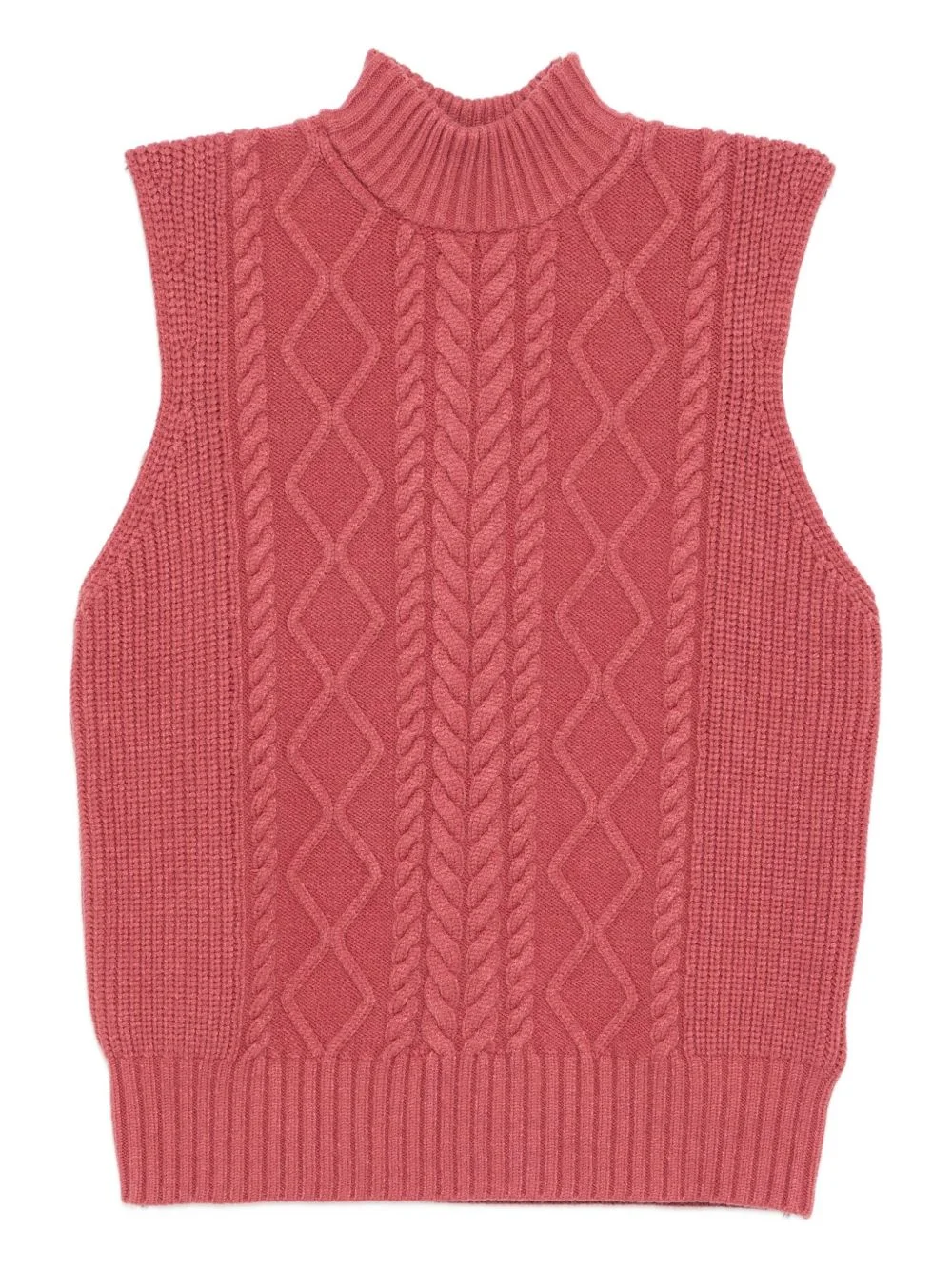 Joilette rollneck vest Highlights - Mauve wood - Cable knit - Ribbed hem Imported Composition Viscose 42%, Polyester 30%, Nylon 20%, Lyocell 8% SIZE & FIT Model measurements Height 5 ft 10 in(1.78 m) Bust/Chest 29.52 in(75 cm) Hips 34.25 in(87 cm) Waist 24.4 in(62 cm) FittingInformation Designed to be unstructured, offering a loose fit throughout Made with a midweight knit, this piece offers some stretch Washing instructions Machine Wash