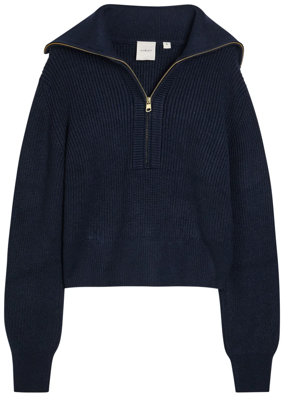 Varley Maura Ribbed Half-zip Knit Sweatshirt