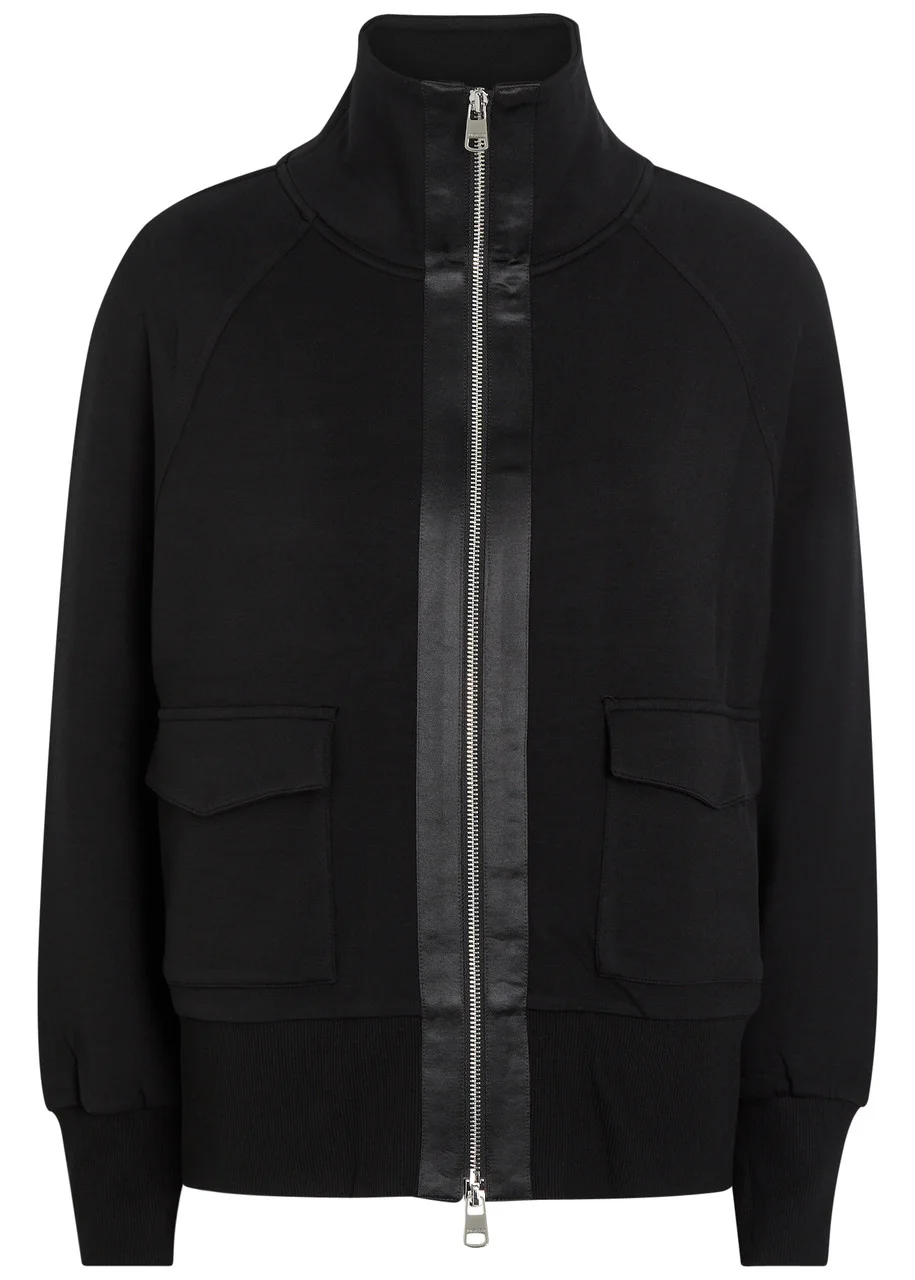 Info & Care Varley stretch-jersey sweatshirt Funnel neck, raglan sleeves, satin panels, two front flap pockets, ribbed trims; Two-way zip fastening through front 72% viscose, 23% polyester, 5% elastane; trim: 96% viscose, 4% elastane Machine wash; Size & Fit Length shoulder to hem: 25 inches/ 63.5cm Midweight Relaxed fit Model is 5'10"/ 178cm and wears a size small