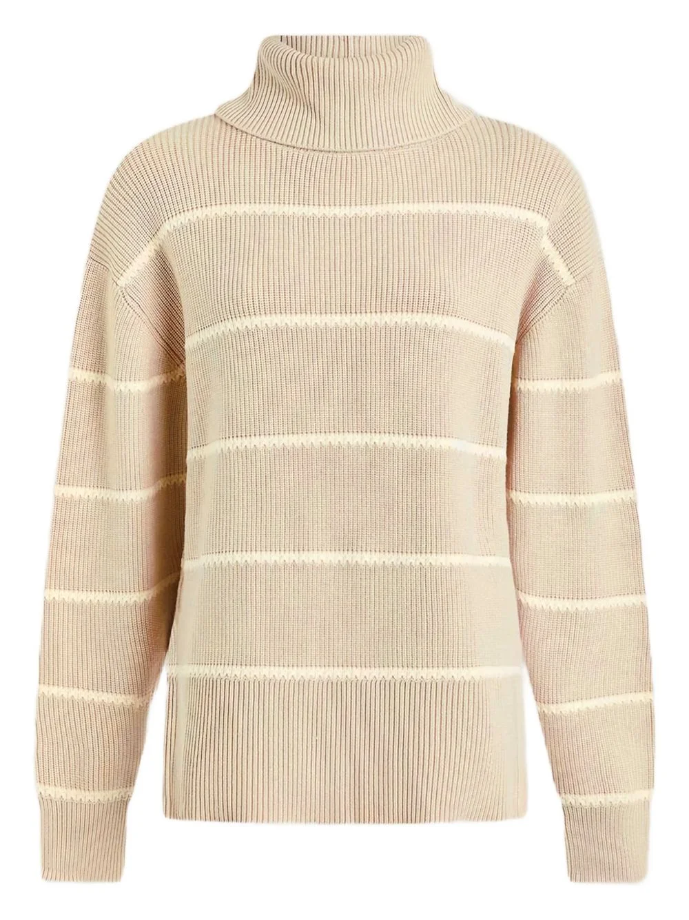ribbed-knit turtleneck sweater Highlights - Beige - Turtleneck - Ribbed knit - Horizontal stripes - Long sleeves Imported Composition Fabric 100% Washing instructions Read Manufacturer Guidelines