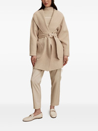 wrap belted jacket Highlights - Light beige - Shawl collar - Self-tie belt - Front patch pockets - Relaxed fit - Long sleeves Imported Composition Polyester 80%, Wool 20% Washing instructions Read Manufacturer Guidelines