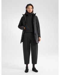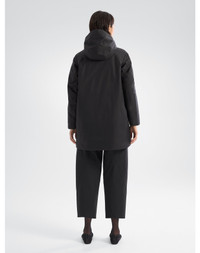 Refined architecture in an insulated GORE-TEX coat for cold, wet city winters. Refined, feminine architecture in a coat providing warmth and weather protection on wet, cold, windy city days. Recycled PrimaLoft® insulation offers warmth, and the PFAS-free GORE-TEX ePE fabric delivers complete protection with a reduced carbon footprint. The relaxed fit layers easily with other Veilance pieces, and the insulated hood adjusts with stealth webbing and hidden cord locks for coverage that aligns with the silhouette. A soft, insulated draft collar adds another layer of warmth. Full Product Features Technical Features - Moisture-resistant outer face fabric - Windproof - Breathable Collar Configuration - Insulated draft collar adds warmth and is made with 100% recycled Diem™ polyester for silky soft comfort Construction - PFAS-free GORE-TEX ePE with a recycled face delivers complete waterproof, windproof, breathable protection - PrimaLoft® synthetic insulation is breathable, warm, and made with recycled polyester Cuff & Sleeves Configuration - Exceptionally soft Diem™ recycled polyester cuff gaskets seal out drafts Design & Fit - Relaxed fit for comfort and easy layering Fabric Treatment - FC0 DWR (Durable Water Repellent) finish repels moisture and is PFAS-free Hood Configuration - Insulated, adjustable hood Patterning - Articulated patterning for unrestricted mobility Pocket Configuration - Hidden zippered hand pockets - Two internal zippered pockets Sustainability - Contains materials that meet the bluesign® criteria - PFAS (Per- and polyfluoroalkyl substances) Compliant Zippers & Fly Configuration - Two-way front zipper Materials - Lining: 7dx7d nylon mini ripstop taffeta - 100% Nylon - Synthetic Insulation: PrimaLoft Silver Insulation with PURE Technology, 100gsm - 100% Polyester - Synthetic Insulation: PrimaLoft Silver Insulation with PURE Technology, 120gsm - 100% Polyester - Body: 2L GORE-TEX ePE Gen 2 Beam Dyed 80d plain weave recycled nylon, 106gsm, C0 DWR - 100% Nylon with ePE and PU Membrane - Origin of fabric: CHINA - Origin of dying: CHINA - May release plastic microfibres into the environment when washing