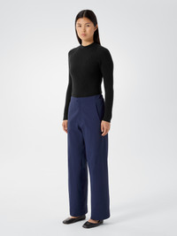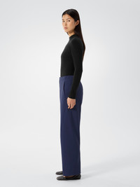 Comfortable, midweight weather-resistant pant with a progressive silhouette. Modern city pant with an easy feel. Offers performance with a regular fit and refined design. The breathable double-weave material provides stretch and transitional weather protection. Laminated hems are clean and refined, and an elastic insert at the waist adds comfort. Articulated patterning removes restriction. The design and distinctive Veilance aesthetic make this a versatile wardrobe choice on its own or paired with the Tenia Blazer. Full Product Features Technical features - Durable - Wind resistant - Water repellent Construction - Finish-taped seams for a clean aesthetic - Brushed back Wee Burly™ Double Weave fabric is durable, weather resistant and comfortable next-to-skin Design & Fit - Garment Inseam: Size 4 is 30"/76cm — Inseam varies by size Fabric treatment - FC0-DWR (Durable Water Repellent) finish repels moisture Hem configuration - Laminated hems create a clean finish and are constructed to allow tailoring Patterning - Articulated patterning for unrestricted mobility Sustainability - Contains materials that meet the bluesign® criteria - Body - bluesign® approved material - Lining - bluesign® approved material, recycled content - Contains raw materials made with at least 30% portion of recycled content - PFAS (Per- and polyfluoroalkyl substances) Compliant Waist & Belt configuration - Laminated waistband - Y-elastic insert at back of the waist creates a comfortable fit Zippers & Fly configuration - Zippered fly with double snap for a secure closure Materials - Self: Wee Burly Double Weave - 56% nylon, 34% polyester, 10% elastane - bluesign Approved Material - Origin of fabric: TAIWAN - Origin of dyeing: TAIWAN - May release plastic microfibres into the environment when washing