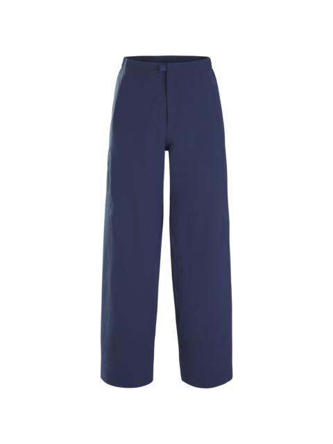 Comfortable, midweight weather-resistant pant with a progressive silhouette. Modern city pant with an easy feel. Offers performance with a regular fit and refined design. The breathable double-weave material provides stretch and transitional weather protection. Laminated hems are clean and refined, and an elastic insert at the waist adds comfort. Articulated patterning removes restriction. The design and distinctive Veilance aesthetic make this a versatile wardrobe choice on its own or paired with the Tenia Blazer. Full Product Features Technical Features - Durable - Wind resistant - Water repellent Construction - Finish-taped seams for a clean aesthetic - Brushed back Wee Burly™ Double Weave fabric is durable, weather resistant and comfortable next-to-skin Fabric Treatment - FC0-DWR (Durable Water Repellent) finish repels moisture Hem Configuration - Laminated hems create a clean finish and are constructed to allow tailoring Patterning - Articulated patterning for unrestricted mobility Sustainability - Contains materials that meet the bluesign® criteria - Contains raw materials made with at least 30% portion of recycled content - PFAS (Per- and polyfluoroalkyl substances) Compliant Waist & Belt Configuration - Laminated waistband - Y-elastic insert at back of the waist creates a comfortable fit Zippers & Fly Configuration - Zippered fly with double snap for a secure closure Materials - Self: Wee Burly Double Weave - 56% nylon, 34% polyester, 10% elastane - bluesign Approved Material - Origin of fabric: TAIWAN - Origin of dying: TAIWAN - May release plastic microfibres into the environment when washing