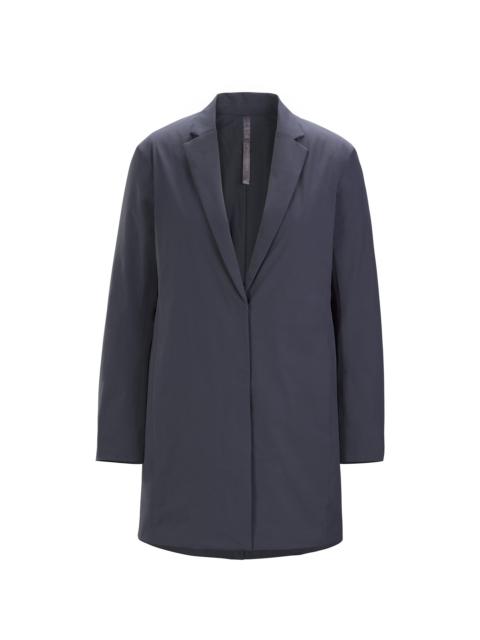 Warmth and weather resistance in a minimalist jacket for fall and winter. Minimalist aesthetic in a jacket for cool days and transitional weather. Made with a weather-resistant softshell fabric, the clean finish of taped seams, and the mapped warmth of recycled PrimaLoft insulations, it performs as a winter midlayer and shoulder-season standalone. The Fortius DW 1.0 fabric is breathable and stretches for unrestricted comfort, articulated patterning elevates mobility, and the regular fit layers comfortably under shells. Full Product Features Technical Features - Moisture-resistant outer face fabric - Breathable - Lightweight Construction - Taped seams for smoother finish - Fortius™ 1.0 softshell is breathable and durable, has performance stretch, and contains 43% recycled content - PrimaLoft® synthetic insulation is breathable, warm, and made with recycled polyester Design & Fit - Regular fit provides freedom of movement with room for layers - Garment Centre Back Length: Size S is 24"/60cm - Varies by size Fabric Treatment - FC0 DWR (Durable Water Repellent) finish repels moisture and is PFAS-free Patterning - Articulated patterning for unrestricted mobility Pocket Configuration - Internal zippered pocket - Two hidden hand pockets Sustainability - Contains materials that meet the bluesign® criteria - PFAS (Per- and polyfluoroalkyl substances) Compliant UPF Rating - 40 Zippers & Fly Configuration - Centre front zipper covered by placket Materials - Body: RecNylon DBL Weave LTW Solid, 125gsm - 86% Nylon, 14% Elastane - Synthetic Insulation: PrimaLoft Silver Insulation with PURE Technology, 40gsm - 100% Polyester - Synthetic Insulation: PrimaLoft Silver Insulation with PURE Technology, 60gsm - 100% Polyester - Lining: Recycled 20d nylon plain weave weft stretch FC0 DWR, 58gsm - 88% Nylon, 12% Elastane - Origin of fabric: TAIWAN - Origin of dying: TAIWAN - May release plastic microfibres into the environment when washing