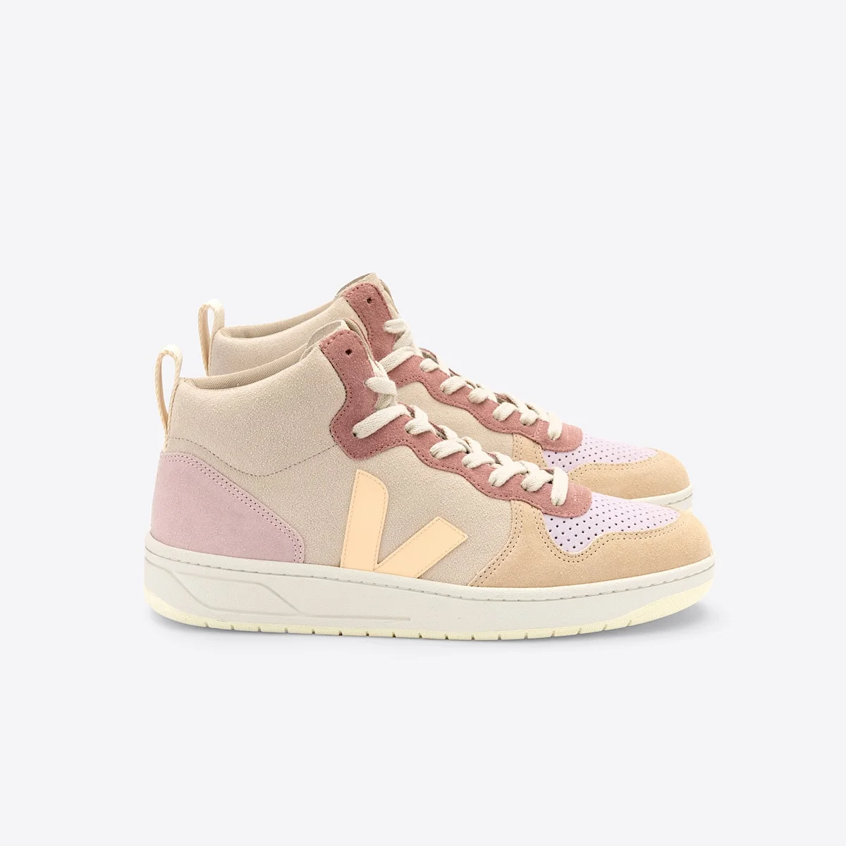 Upper: Suede Panels: Suede Logo V: Amazonian rubber (26%), silica mineral (31%), synthetic rubber (21%) and others (22%) Insole: Amazonian rubber (11%), bio-based E.V.A.* (53%, including 42% sugarcane), recycled E.V.A.* (11%), organic cotton (12%) and others (13%) Outsole: Amazonian rubber (40%), mineral silica (23%), recycled rubber (10%), synthetic rubber (11%) and others (16%) Lining: Recycled polyester (100%) Laces: Organic cotton (100%) Backloop: Recycled polyester (100%) Made in Brazil Suede is the underside of leather, sanded to give it a soft and smooth feel. It comes from farms in the Rio Grande do Sul region and is tanned in Brazil without harmful or prohibited chemicals. VEJA uses dyes that meet regulations and prioritizes responsible water use during the tanning process. This suede is then coated with PFC-free water-repellent oils to shield the sneakers from light rain.