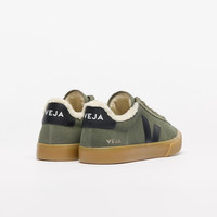 Upper: Suede Panels: Suede and Organic Traced leather (O.T.) Insole: Amazonian rubber (9%), E.V.A. bio-sourced (37%, including 30% sugar cane), recycled E.V.A. (11%), fleece (23%) and others (20%) Outsole: Amazonian rubber (40%), mineral silica (23%), recycled rubber scraps (10%), synthetic rubber (11%) and others (16%) Lining: Fleece - Recycled polyester (75%) and polyester (25%) Laces: Organic cotton (100%) Made in Brazil Suede is the underside of leather, sanded to give it a soft and smooth feel. It comes from farms in the Rio Grande do Sul region and is tanned in Brazil without harmful or prohibited chemicals. VEJA uses dyes that meet regulations and prioritizes responsible water use during the tanning process. This suede is then coated with PFC-free water-repellent oils to shield the shoes from light rain.