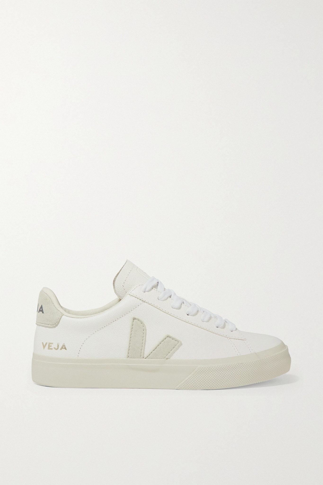 EDITORS'NOTES Veja updates its signature 'Campo' sneakers in fresh, neutral hues that will go with just about anything in your closet. Made from durable ChromeFree calf leather, they're trimmed with panels of suede and set on rubber soles sourced from the Amazon rainforest. Wear them with jeans and dresses alike. This product was created using Considered Materials. Find out more about NET SUSTAIN here. SIZE & FIT Veja follows its own size guide, please refer to below: - IT 36 = UK 3/ US 5 - IT 37 = UK 4/ US 6 - IT 38 = UK 5/ US 7 - IT 39 = UK 6/ US 8 - IT 40 = UK 7/ US 9 - IT 41 = UK 8/ US 10 - Fits true to size, take your normal size DETAILS & CARE - Rubber sole measures approximately 35mm/ 1.5 inches - White ChromeFree leather (Calf), off-white suede - Lace-up front