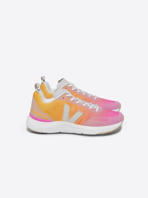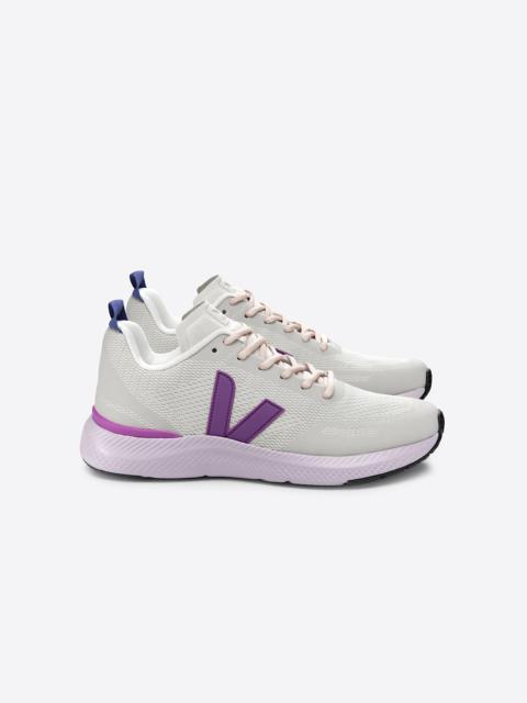 VEJA creates its first training shoe: the Impala, the lightest pair that VEJA has developed. Weight: 245 Drop: 6 Stride: Neutral Surface: Indoor / Gym Weight: 245 Drop: 6 Stride: Neutral Surface: Indoor / Gym Upper: Engineered-Mesh (100% recycled polyester) Panels: T.P.U. Logo V: T.P.U. and Pebax® Rnew® (including 62% ricinus oil) Heel support insert: Pebax® Rnew® (including 62% ricinus oil) Insole: Amazonian rubber (15%), E.V.A. * bio-sourced (75%, including 42% sugar cane) and others (10%) Midsole: E.V.A. * bio-sourced (70%, including 56% sugar cane) and others (30%) Outsole: Amazonian rubber (31%), mineral silica (31%), synthetic rubber (19%) and others (19%) Lining: Recycled polyester (100%) Laces: Recycled polyester (100%) Backloop: Recycled polyester (100%) L-Foam: Natural latex (50%) and synthetic latex (50%) Made in Brazil This knitting technique “Engineered-Mesh” offers a tailor-made placement of breathable and supportive areas. The mesh alternates between tight stitches and spaced-out stitches.