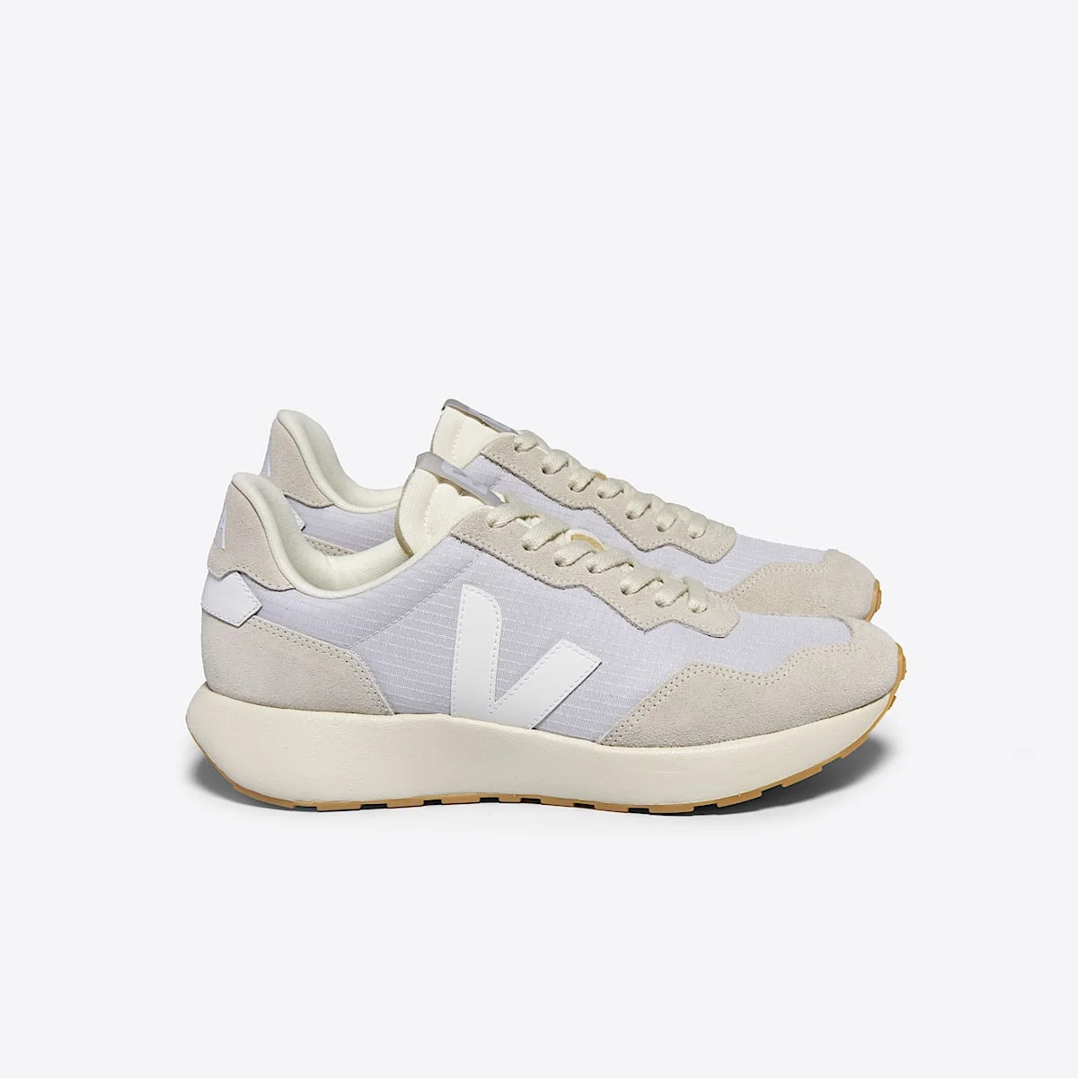 VEJA launches the Paulistana, its latest retro-running model. With its asymmetrical design and thick sole; the Paulistana mixes distinctive features for a unique style. Upper: Ripstop (100% recycled polyester) Panels: Suede and Leather Logo V: Amazonian rubber (26%), mineral silica (22%), synthetic rubber (21%) and others (31%) Insole: Amazonian rubber (11%), bio-based E.V.A. (53%, including 42% sugar cane), recycled E.V.A. (11%), organic cotton (12%) and others (13%) Midsole: E.V.A. bio-sourced (88%, including 59% sugar cane) and others (12%) Outsole: Amazonian rubber (12%), mineral silica (30%), synthetic rubber (49%) and others (9%) Lining: Recycled polyester (100%) Laces: Organic cotton (100%) Made in Brazil Ripstop fabric features a reinforced structure as it is tearresistant due to its mesh shaped pattern made up of fine and thicker, intertwined yarns. If there is a tear in the fabric, it will be narrowed down to the circumference of the square. Being a light material, it is often used in outdoor activities, which requires solid technical expertise.