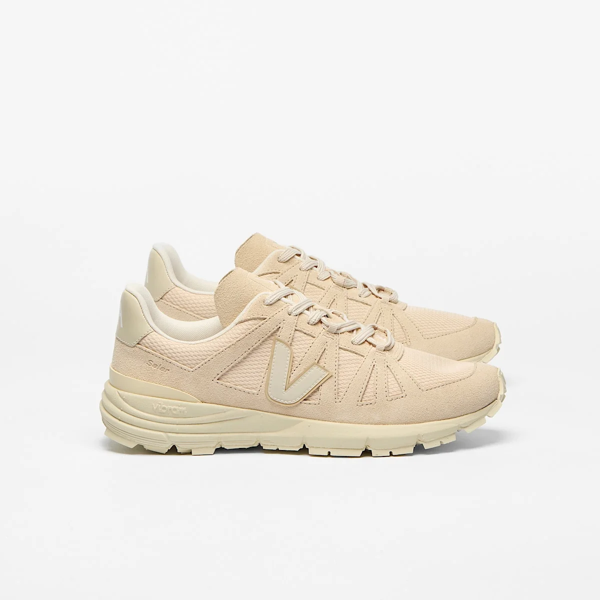 VEJA Exclusive VEJA introduces its new model: the Salar The pair features a Vibram sole. Co-developed with VEJA, this sole merges ecological materials, such as Amazonian rubber and sugarcane-based E.V.A., with Vibram’s cutting-edge technology. Upper: Alveomesh (100% recycled polyester) Panels: Suede and Leather Insole: Amazonian rubber (13%), bio-based E.V.A. (65%, including 52% sugarcane), organic cotton (10%) and others (12%) Midsole: Bio-based E.V.A (61%, including 49% sugar cane), mineral carbonate (31%) and others (8%) Outsole: Amazonian rubber (30%), mineral silica (25%), synthetic rubber (24%) and others (21%). Made with Vibram Lining: Recycled polyester (100%) Laces: Recycled polyester (100%) Made in Brazil The Alveomesh is a technical fabric made out exclusively of recycled polyester. It brings breathability, flexibility and lightness to the shoe.