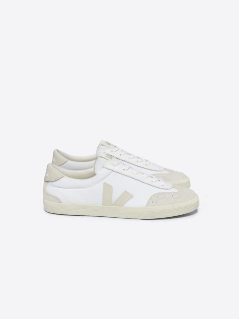 Inspired by the Brazilian volleyball shoes of the 70s, VEJA is reissuing the Volley - its very first model launched in 2005. Weight: 0.470 Weight: 0.470 Upper: Canvas (100% organic cotton) Panels: Suede and Leather Logo V: Amazonian rubber (26%), mineral silica (22%), synthetic rubber (21%) and others (31%) Insole: Amazonian rubber (11%), bio-based E.V.A.* (53%, including 42% sugarcane), recycled E.V.A.* (11%), organic cotton (12%) and others (13%) Outsole: Amazonian rubber (40%), mineral silica (23%), recycled rubber (10%), synthetic rubber (11%) and others (16%) Welt: Synthetic rubber (40%), mineral silica (22%) and others (38%) Lining: Recycled polyester (100%) Laces: Organic cotton (100%) Made in Brazil Cotton is cultivated in Brazil and Peru by associations that respect people and the environment, according to fair trade principles. In Brazil, cotton is organic and agroecological. This agriculture enriches the land after being cultivated by improving the diversity of species cultivated and water retention in the soil. In Peru, farmers grow certified organic and regenerative cotton. They receive support in their certification process and receive technical and financial assistance to improve their production.