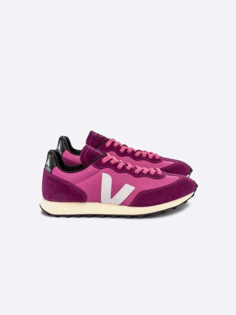 Retro running style. Upper: Alveomesh (100% recycled polyester) Panels: Suede and Leather Logo V: Amazonian rubber (26%), mineral silica (22%), synthetic rubber (21%) and others (31%) Insole: Amazonian rubber (11%), bio-based E.V.A.* (53%, including 42% sugarcane), recycled E.V.A. (11%), organic cotton (12%) and others (13%) Midsole: E.V.A.* bio-sourced (65%, including 52% sugar cane) and others (35%) Outsole: Amazonian rubber (12%), mineral silica (30%), synthetic rubber (49%) and others (9%) Lining: Recycled polyester (100%) Laces: Organic cotton (100%) Made in Brazil The Alveomesh is a technical fabric made out exclusively of recycled polyester. It brings breathability, flexibility and lightness to the shoe.