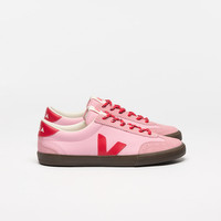 Inspired by the Brazilian volleyball shoes of the 70s, VEJA is reissuing the Volley - its very first model launched in 2005. Upper: Organic Traced leather (O.T.) Panels: Suede and Organic Traced leather (O.T.) Insole: Amazonian rubber (11%), E.V.A. bio-sourced (45%, including 36% sugar cane), recycled E.V.A. (13%), organic cotton (5%) and others (26%) Outsole: Amazonian rubber (40%), mineral silica (23%), recycled rubber (10%), synthetic rubber (11%) and others (16%) Lining: Recycled polyester (100%) Laces: Recycled polyester (100%) Made in Brazil O.T. Leather (Organic Traced) comes from 100% certified organic farms in Uruguay, a country known for its livestock farming culture and high-quality leather. This is our softest and thinnest leather. It is mechanically treated to gain suppleness and finesse, then tanned in Brazil using fewer dyes than conventional leather. VEJA uses dyes that comply with regulations and ensures responsible water use during the tanning process.