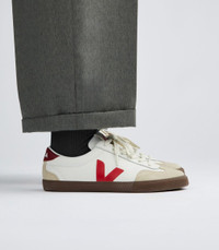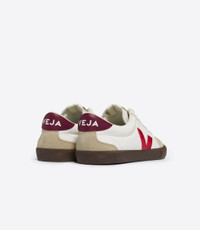 Inspired by the Brazilian volleyball shoes of the 70s, VEJA is reissuing the Volley - its very first model launched in 2005. Upper:O.T. Leather Panels:Suede and leather Logo V:Amazonian rubber (26%), mineral silica (22%), synthetic rubber (14%) and others (38%) Insole:Amazonian rubber (11%), bio-based E.V.A.* (42% sugar cane), recycled E.V.A.* (11%), organic cotton (12%) and others (14%) Outsole:Amazonian rubber (40%), mineral silica (23%), recycled rubber (10%), synthetic rubber (11%) and others (16%) Welt:Synthetic rubber (40%), mineral silica (22%) and others (38%) Lining:Tech (100% recycled polyester) Laces:Organic cotton (100%) Made in Brazil O.T. leather (Organic Traced leather) comes from farms in Uruguay 100% organic certified. This type of leather undergoes a mechanical beating process that makes it fine and bendable. Tanned in Brazil, it uses less dyes than our conventional leather. VEJA sources O.T. leather from the Uruguayan Pampa, a region renowned for the quality of its leather and livestock farming. *Ethylene vinyl acetate