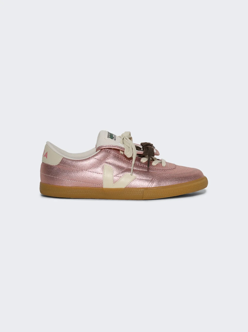 Details - Metallic pink leather - Sold with three pairs of laces - Upper and Paneling: Organic Traced Leather - Insole: Amazonian rubber, bio-sourced E.V.A., recycled E.V.A., organic cotton - Outsole: Amazonian rubber, mineral silica, synthetic rubber - Lining: 100% Recycled polyester - Laces: 100% Organic cotton - Made in Brazil VEJA collaborates with the Italian brand Magliano on a new version of the Panenka. Inspired by vintage football cleats, this unisex shoe becomes a canvas for unconventional tailoring. Size Information: Vendor Color Code: Brand Style: MG0221675 Designer/Brand: VEJA
