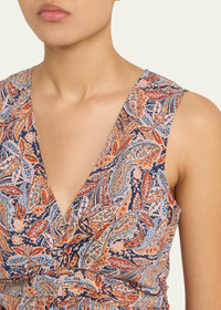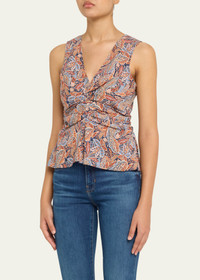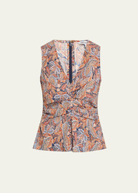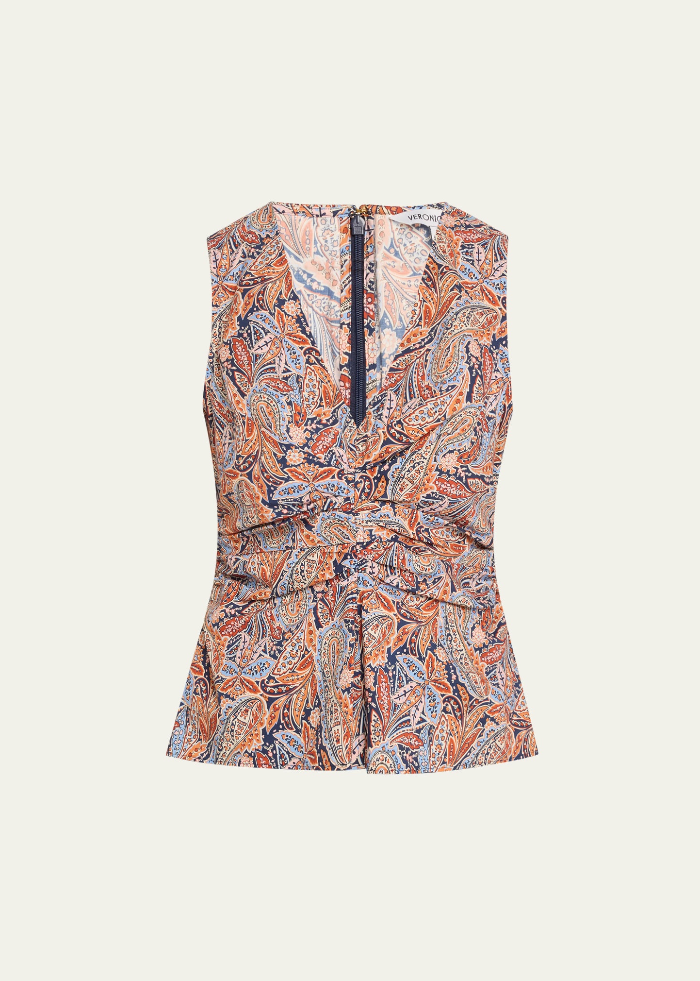 Veronica Beard "Aiden" paisley-printed top with gathering at the waist V neckline Sleeveless Classic fit Hem sits at the hip Invisible back zip Cotton Dry clean Imported Online Inquiries: BGS21_T6B1A| Store Inquiries: #4951102