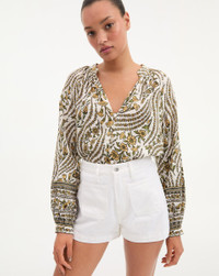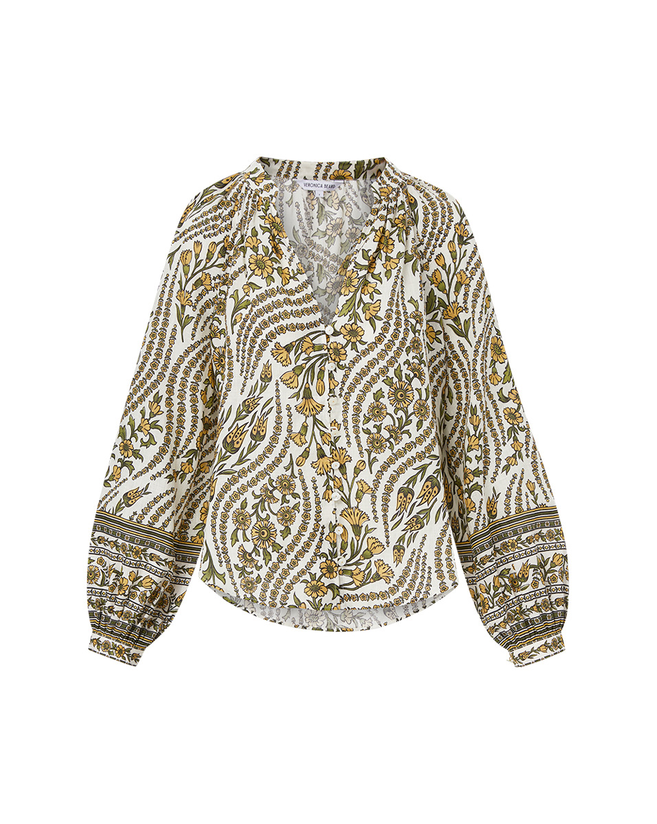 Product details Made from airy linen, the Ailani features a relaxed fit, a deep split-V neck, beautiful florals and romantic blouson sleeves. Tuck this wear-everyday style into jeans or shorts for a chic springtime look. - 100% Linen - Unlined - Dry Clean Only - Style #2502LN2240981