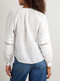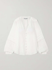Ailani crochet-trimmed pintucked ramie-voile blouse Off-white