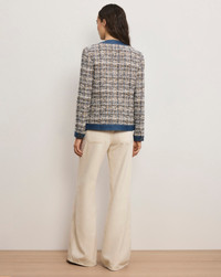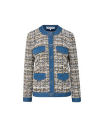 Product details Crafted from luxe Italian tweed in off-white, the Ainslie jacket features a boxy, mid-length silhouette. Collarless and designed with a full button-down placket, it’s finished with denim-covered, gold-rimmed buttons, a contrast denim trim, and four front flap pockets. A utilitarian take on the lady jacket, it pairs effortlessly with wide-leg denim and strappy heels. - 51% Cotton, 37% Polyester, 8% Acrylic, 3% Other fibers, 1% Polyamide - Lining: 100% Cupro - Fabric country of origin: Italy - Dry clean only - Style #2602TW12811323