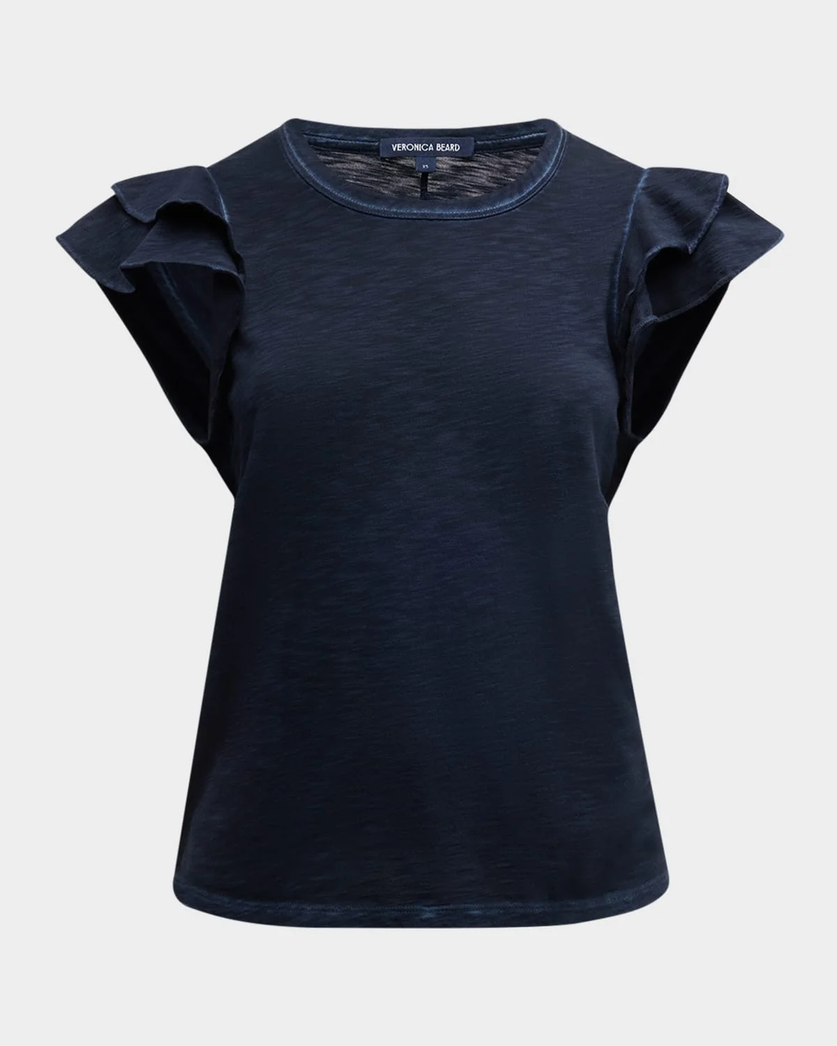 Veronica Beard "Akeela" cotton tee featuring ruffled flutter sleeves Crew neckline Easy fit Hem falls to the hip Pullover style Cotton Machine wash cold, tumble dry Made in Peru