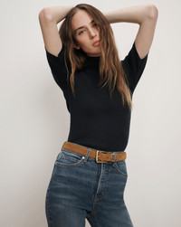 Product details A true wardrobe workhorse. Spun from pure Merino wool, the Alastair knit mock neck pullover features elongated short sleeves and soft ribbing for subtle texture. Soft, breathable, and easy to layer, it pairs effortlessly with jeans for a casual look or with tailored trousers and a blazer for a more polished finish. - 100% Merino Wool - Fabric country of origin: Italy - Dry clean only - Style #2508KA1390787