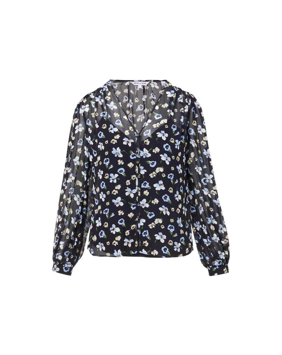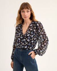 Product details The perfect effortless top. We obsessed over every detail, from the relaxed fit to the voluminous bishop sleeves to the allover watercolor florals. Made from 100% silk, this versatile shirt can be worn everywhere from work to weekends. - 100% Silk - Lining: 100% Polyester - Dry clean only - Style #2412GG6641171