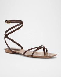 - Veronica Beard "Allegra" leather sandals - 0.25 in / 10 mm flat heel - Thong strap - Adjustable ankle strap - Leather outsole - Lining: Leather - Spot clean - Imported