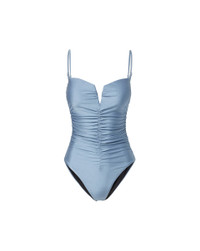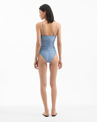 Product details Our signature ruching defines the Arpel swimsuit—a flattering, feminine one-piece bathing suit. Padding at the bust provides support that shapes and flatters while the split-V detail adds a sexy peekaboo factor. Pro tip: Style as a bodysuit and pair with jeans for a quick and versatile vacation hack. Available in black, light blue, and army green. - 80% Polyamide, 20% Elastane - Lining: 82% Polyamide, 18% Elastane - Made in USA - Machine wash cold and hang to dry. Do not iron, bleach or dry clean. - Style #2505SW1300213