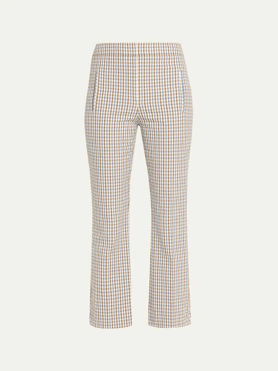 Veronica Beard's "Arte" pants are crafted from plaid stretch cotton High rise Side and back welt pockets Cropped at the ankle Fitted through the hip and thigh; flared from knee Cotton/elastane Dry clean Imported