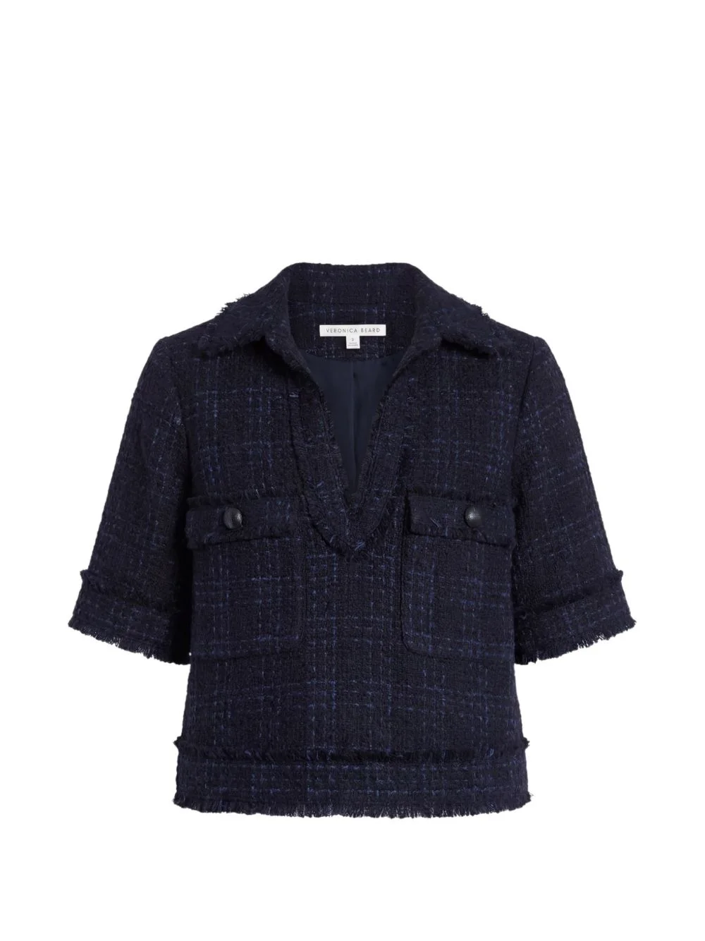 Babbs top Highlights - Navy blue - Flap pockets - Fringed hem - V-neck Imported Composition Fabric 100% Washing instructions Read Manufacturer Guidelines