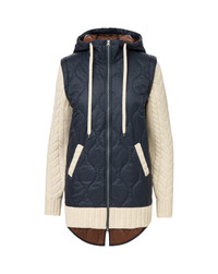 Product details Two-for-one style. The Barrows jacket pairs a quilted body with wool-blend cable-knit sleeves for striking contrast, giving you the best of both worlds: the warmth of a coat and the comfort of your favorite sweater. Featuring a quilted hood, elongated back hem, and contrasting ribbed trim and patch pockets, it’s as functional as it is chic—all you have to do is zip up and go. - 100% Nylon Body; 80% Wool, 20% Polyamide Sleeves - Dry clean only - Style #2508KA2211333