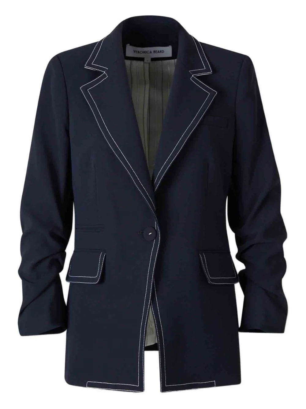 contrast-stitch puff-sleeves blazer Highlights Made in United States Composition Polyester 100%
