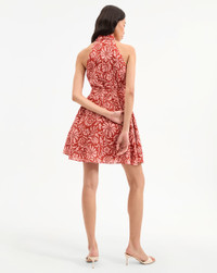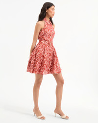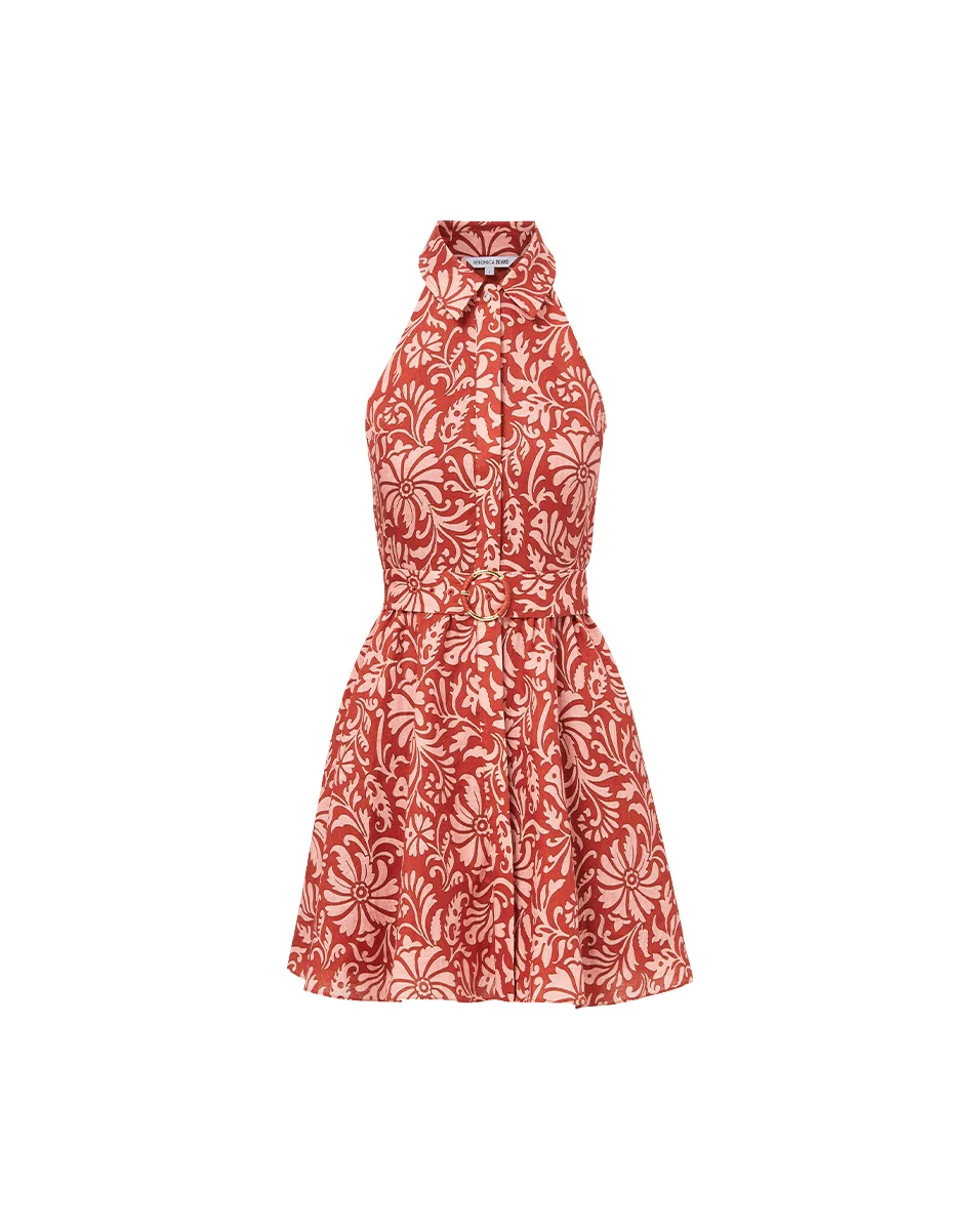 Product details Expertly tailored from lightweight linen, the Beau boasts a feminine fit-and-flare silhouette, beautiful ornamental florals, and a chic collared halter neck. An O-ring belt, in a matching print, completes the look. Style with strappy sandals or espadrilles—perfect for weekend and wanderlust. - 100% Linen - Lining: 100% Polyester - Dry clean only - Style #2503LN2221537