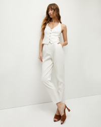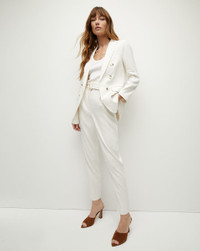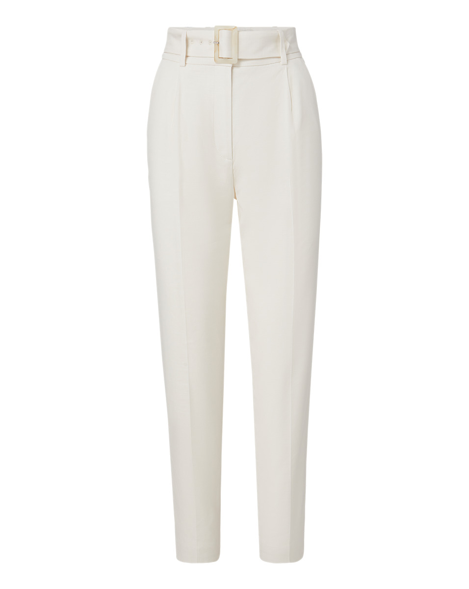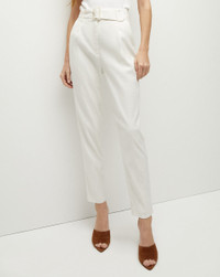 Tailored from a French stretch-linen, our Sofia pants are chic, sophisticated and versatile. They have a high-rise waist, defined by a detachable belt, and a straight, tapered leg that falls to the ankle. Lined for maximum wearability, wear them with everything from crisp shirting to knitwear. DETAILS & FIT - 55% Linen, 43% Viscose, 2% Elastane - Lining: 100% Polyester - Rise 12.75” | Inseam 27” | Leg opening 12.75”, based on a size 2 - Our model is 5'10" and is wearing a size 2 - Fabric country of origin: France - Professional dry-clean only - Style #2403LN00260438