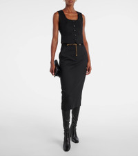 Belted wool pencil skirt