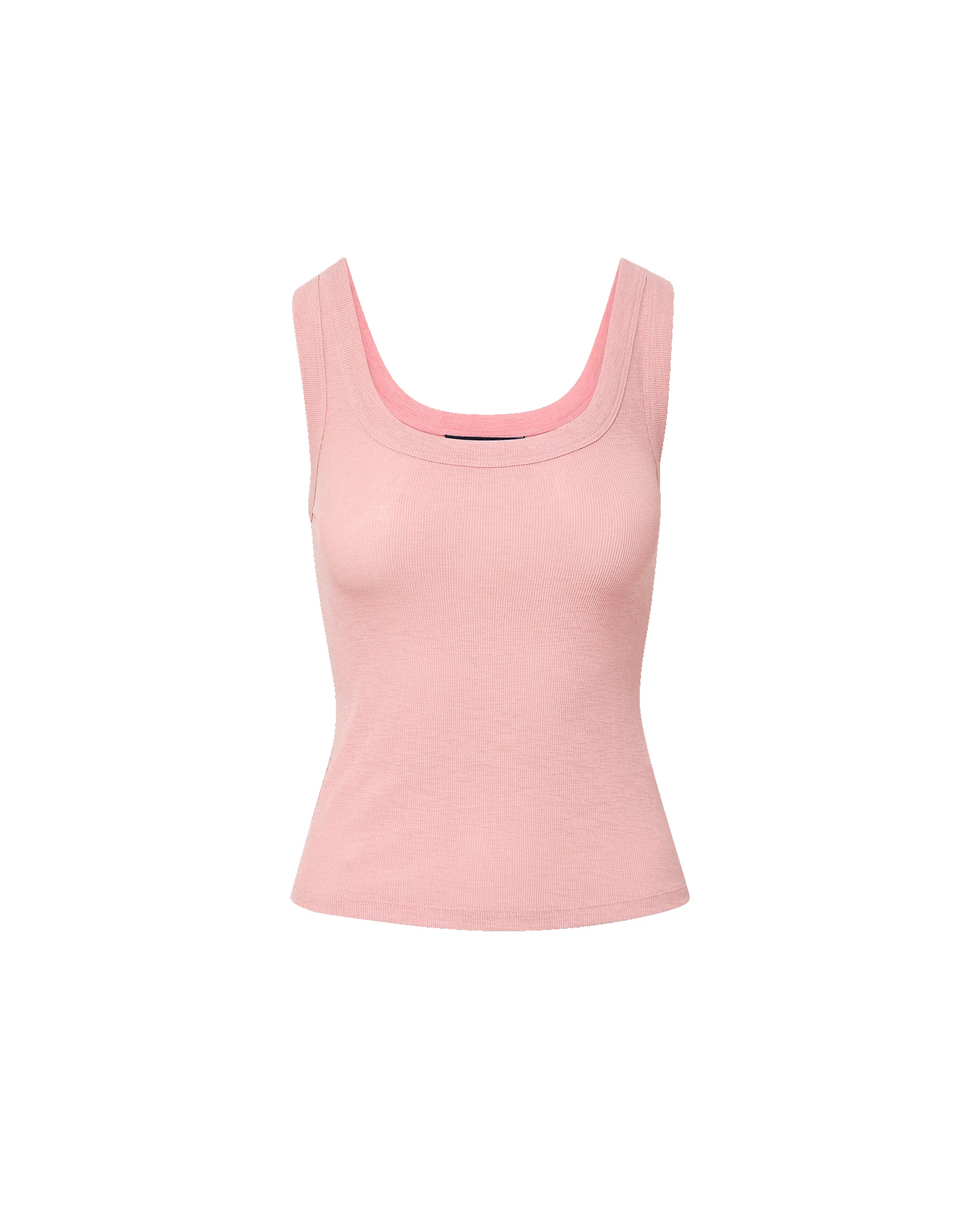 Product details An essential, elevated. Spun from a delicate stretch ribbed knit, the pink Belvedere tank top is cut for a slim, body-skimming fit. Semi-sheer with a scoop-neck, it's designed for everyday ease. Wear this sleeveless style on its own, tucked into denim, or layered under your favorite blazers and cardigans. - 96% Polyester, 4% Elastane - Turn inside out and machine wash cold with like colors. Delicate wash. Lay flat to dry. Do not bleach. - Style #J2602JY157T0886