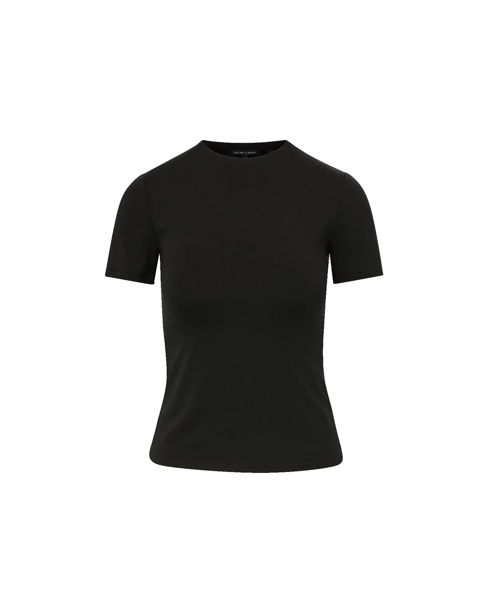 Product details The ultimate foundation for an elevated wardrobe. Crafted from a premium stretch blend, the Benedict is cut for a slim, body-skimming fit with a clean crew neckline and short sleeves. Designed for everyday ease, wear this black T-shirt on its own tucked into denim, or layered under your favorite blazers and cardigans. - 90% Lyocell, 10% Elastane - Machine wash cold. - Style #J2511JY147T0920