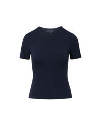 Product details The ultimate foundation for an elevated wardrobe. Crafted from a premium stretch blend, the navy Benedict T-shirt is cut for a slim, body-skimming fit with a clean crew neckline and short sleeves. Wear this versatile top on its own, tucked into denim, or layered under your favorite blazers and cardigans. - 90% Lyocell, 10% Elastane - Turn inside out and machine wash cold with like colors. Delicate cycle. Tumble dry on low. Do not bleach. - Style #J2602JY147T0920