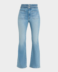 - Made from light vintage-inspired denim, the Beverly jeans by Veronica Beard feature subtle fading, giving them a versatile, worn-in look - Approx. 11.5" rise; 30" inseam - High-rise with a unique braided waistband trim - Four-pocket style - Full length - Leg-elongating flared legs - Button/zip fly - Cotton/elastane - Machine wash cold, wash inside out - Made in USA from imported materials