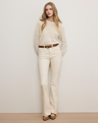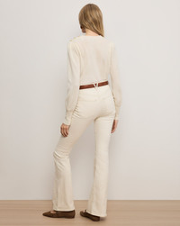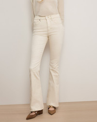 Product details The Beverly jeans you know and love—now in ecru. Made in LA from super-stretch Japanese denim, this best-selling style features a high-rise waist that is fitted through the hips and thighs with a subtly flared leg. Tuck in any of our tops and add sky-high heels for an elongating silhouette. - 92% Cotton, 6% Polyester, 2% Polyurethane - Made in USA from premium Japanese denim - Turn inside out and machine wash cold. Hang to dry. - Style #J2505D230644EC