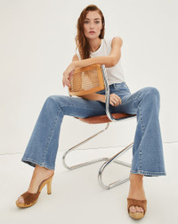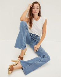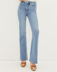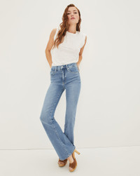 The Beverly jean features a high-rise silhouette that is fitted through the hips and thighs with a skinny-flare leg. We use the highest quality stretch denim, which means our jeans have the most flattering fit and a quick recovery. The pocket construction utilizes stretch fabric for a slimming effect that will ensure a perfect fit. Style with a tee, dickey jacket, and sneakers for a classic VB look. DETAILS & FIT - 62% Cotton, 23% Reused Cotton, 1 1/2% Recycled Polyester, 1 1/2% Elastane - Rise 10 3/4" | Inseam 34" | Leg opening 21 1/8" - Our model is 5'10" and is wearing a size 27 - Turn jeans inside out and machine wash on cold - Style #J22121950644IC - Rigid - Comfort Stretch - Stretch