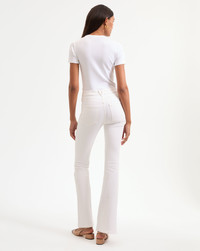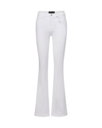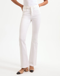 Product details In our fresh white wash, the Beverly jean features a high-rise waist that is fitted through the hips and thighs with a subtly flared leg. High quality stretch denim offers a flattering look with a flexible fit. Tuck in any of our tops and add sky-high heels for an elongating silhouette. - 91% Cotton, 7% Polyester, 2% Elastane - Made in LA from premium Japanese denim - Turn inside out and machine wash on cold. Hang to dry. - Style #J2411D230644WH