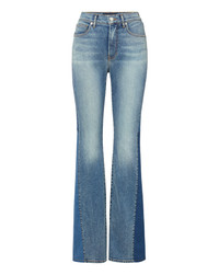 Product details The coolest pair of jeans you'll own: the Beverly, now in two-tone denim. Made in LA from super-stretch Italian cotton, this high-rise silhouette is fitted through the hips and thighs with a subtly flared leg and boasts a spliced gusset in a darker wash along the sides. Pair with a jean jacket for a novel take on double denim. - 92% Cotton, 6% Elastomultiester, 2% Elastane - Made in USA from premium Italian denim - Closure: Zip Fly - Turn inside out and machine wash cold. Hang to dry. Color transfer may occur. - Style #J25064850644RP